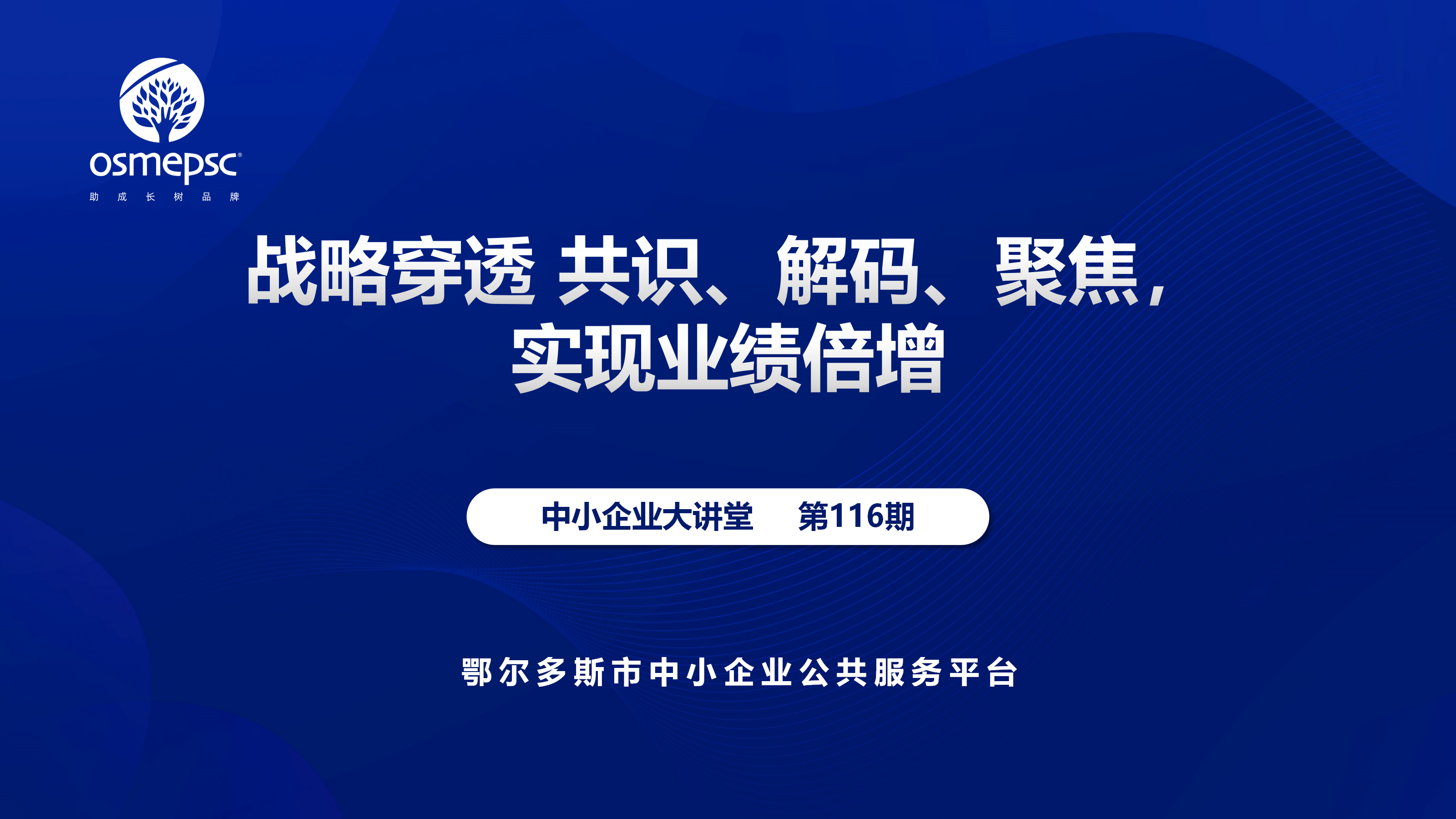 中小企业大讲堂第一百一十六期:战略穿透 共识、解码、聚焦,实现业绩倍增