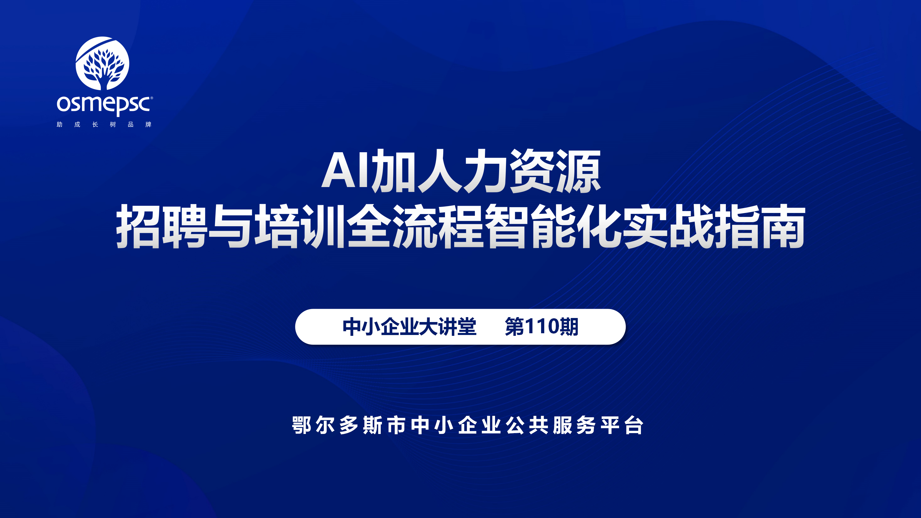 中小企业大讲堂第一百一十期:AI加人力资源 招聘与培训全流程智能化实战指南