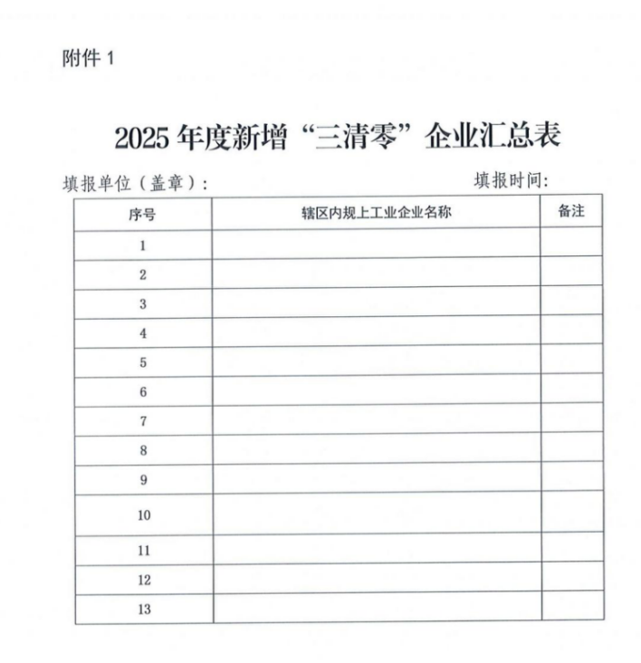 1.建立工作台账,填写上报2025年度新增“三清零”企业汇总表(见附件1)。