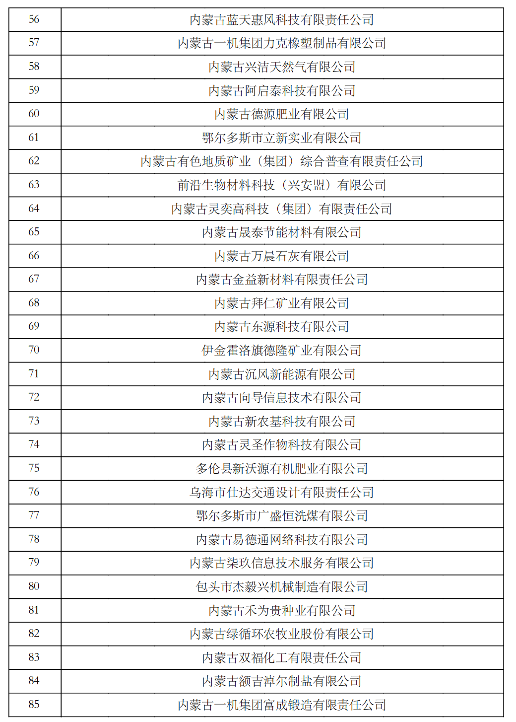 附件:内蒙古自治区认定机构2022年认定的第三批高新技术企业备案公示名单